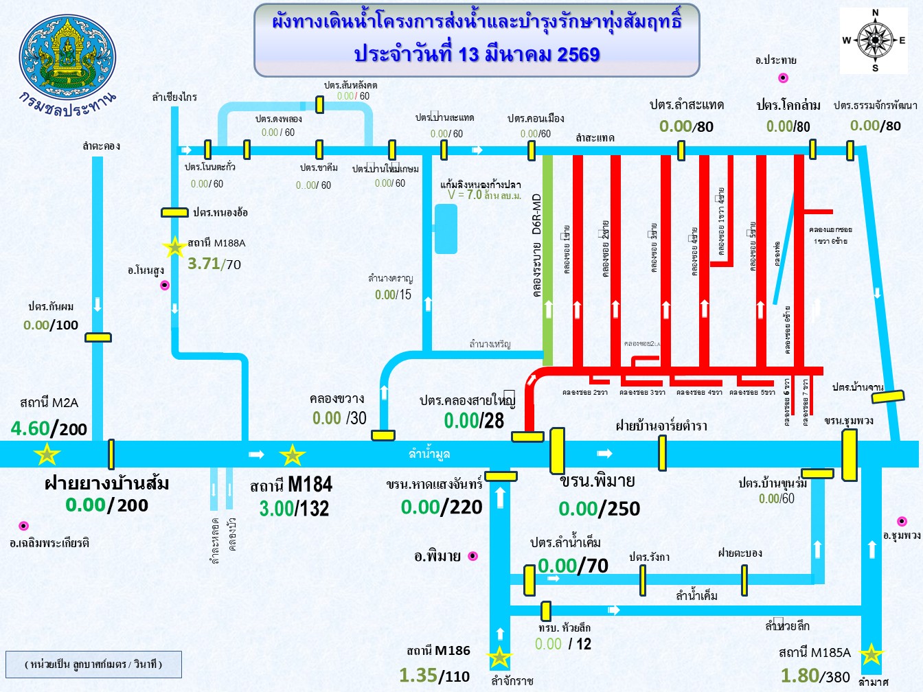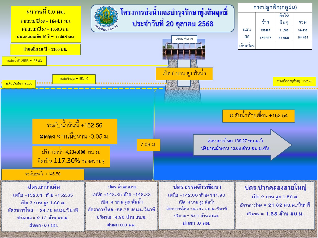 รายงานระดับน้ำ,ปริมาณน้ำ และสภาพน้ำฝนของโครงการฯทุ่งสัมฤทธิ์