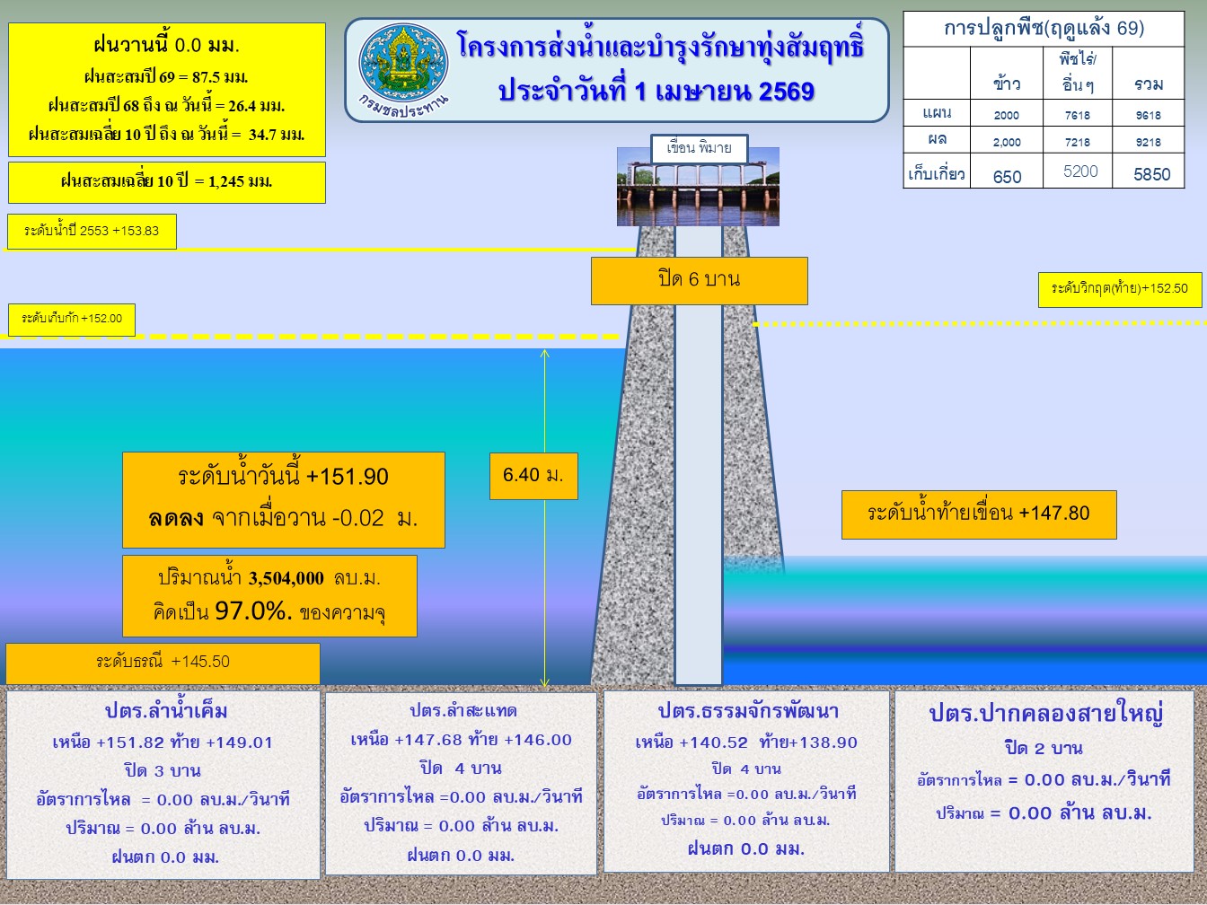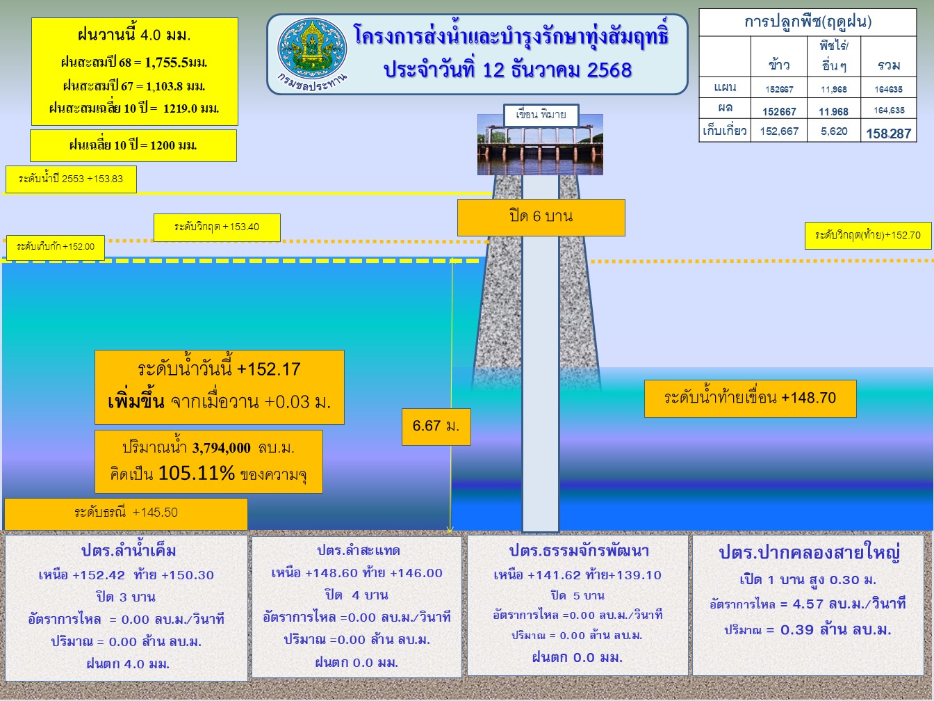 รายงานระดับน้ำ,ปริมาณน้ำ และสภาพน้ำฝนของโครงการฯทุ่งสัมฤทธิ์